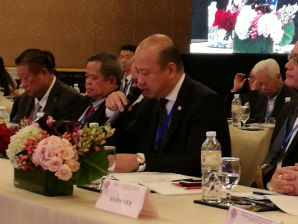 第十九届国际潮团联谊年会及潮汕大学筹备进展报告完毕后,会议即进入申办方发言环节。根据抽签结果,新西兰申办团队先做展示。大屏幕上随即开始放映新西兰申办团队精心准备的视频。新西兰总理和奥克兰市长在镜头里不完美的潮汕话问候所展现出来的诚挚欢迎打动了会场,各位代表报以热烈掌声。视频播放完毕,新西兰驻印尼大使Trevor首先用毛利语向会场致意,开始致辞。Trover大使、霍建强议员及张乙坤会长分别从各自角度表达了新西兰举办第20届国际潮团联谊年会的决心和优势,发言简短而有力。